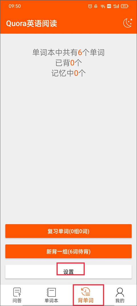 1、用来设置背单词、复习的数量以及时间,点击设置。