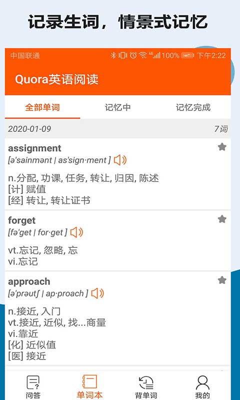 6、这时候如果想要查看你的单词,就可以切换到【单词本】中来记忆。
