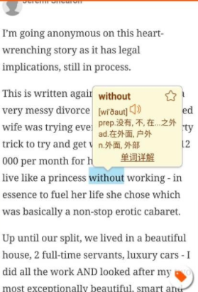 Quora英语阅读是一款非常优秀的英语学习应用,旨在帮助用户提高英语阅读水平。它提供了大量高质量的问答文章。在阅读过程中,如果遇到不认识的单词,只需长按该单词即可查看其中文解释,并且还可以点击音频来学习该单词的正确发音。