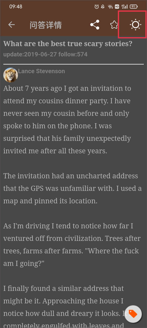 4、右上角的月亮图标,表示夜间模式,可以根据自己的需要来设置。