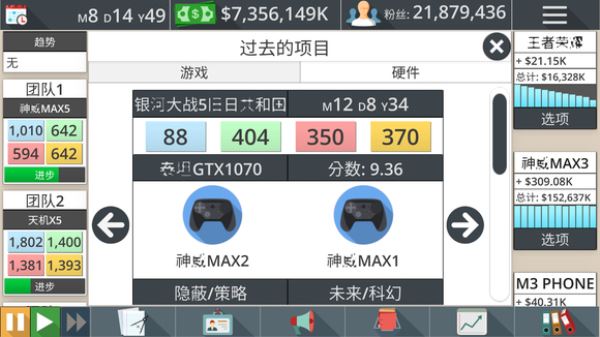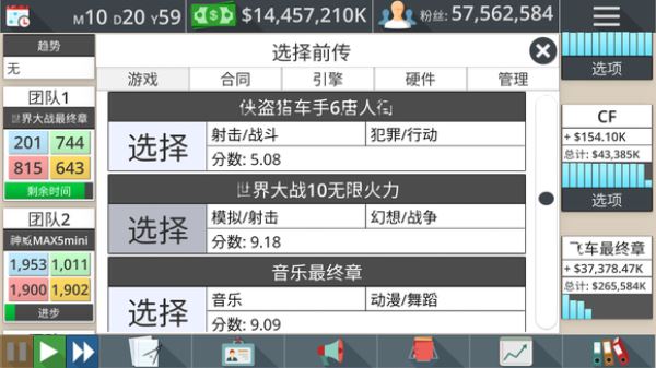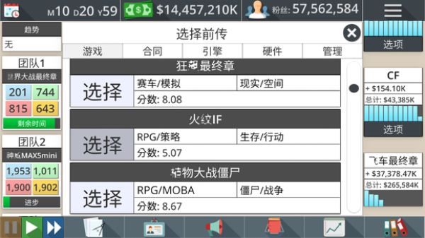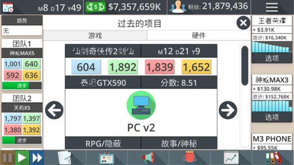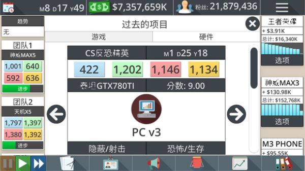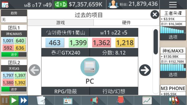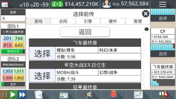 两种游戏模式任君畅玩本作,在正常模式下,你可以管理多达3支团队!每个团队可以在他们自己的项目工作,让您快速开发游戏和游戏机!