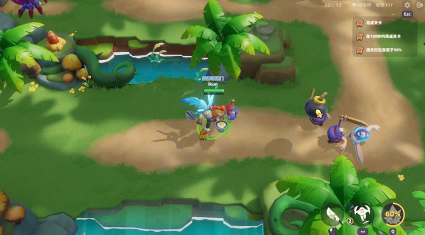 这款游戏主要玩法是3V3V3,捡蓝菇获取经验升级并升级Buff,分数最高的个人对应的队伍获得胜利