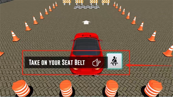 4、在启动车辆前,务必留意提示牌信息,系紧安全带,按照白色箭头指示的方向前行,同时要格外注意避让橙色路锥,防止发生碰撞。