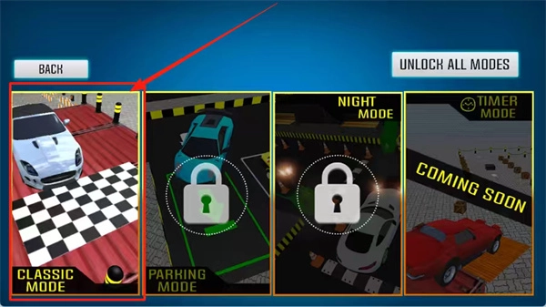 3、通过左右滑动来选择游戏模式。要是选择“CLASSIC MODE”,就能直接开启游玩,而其他模式或许需要解锁,又或者得等待更新。要是想返回,点击“BACK”即可。