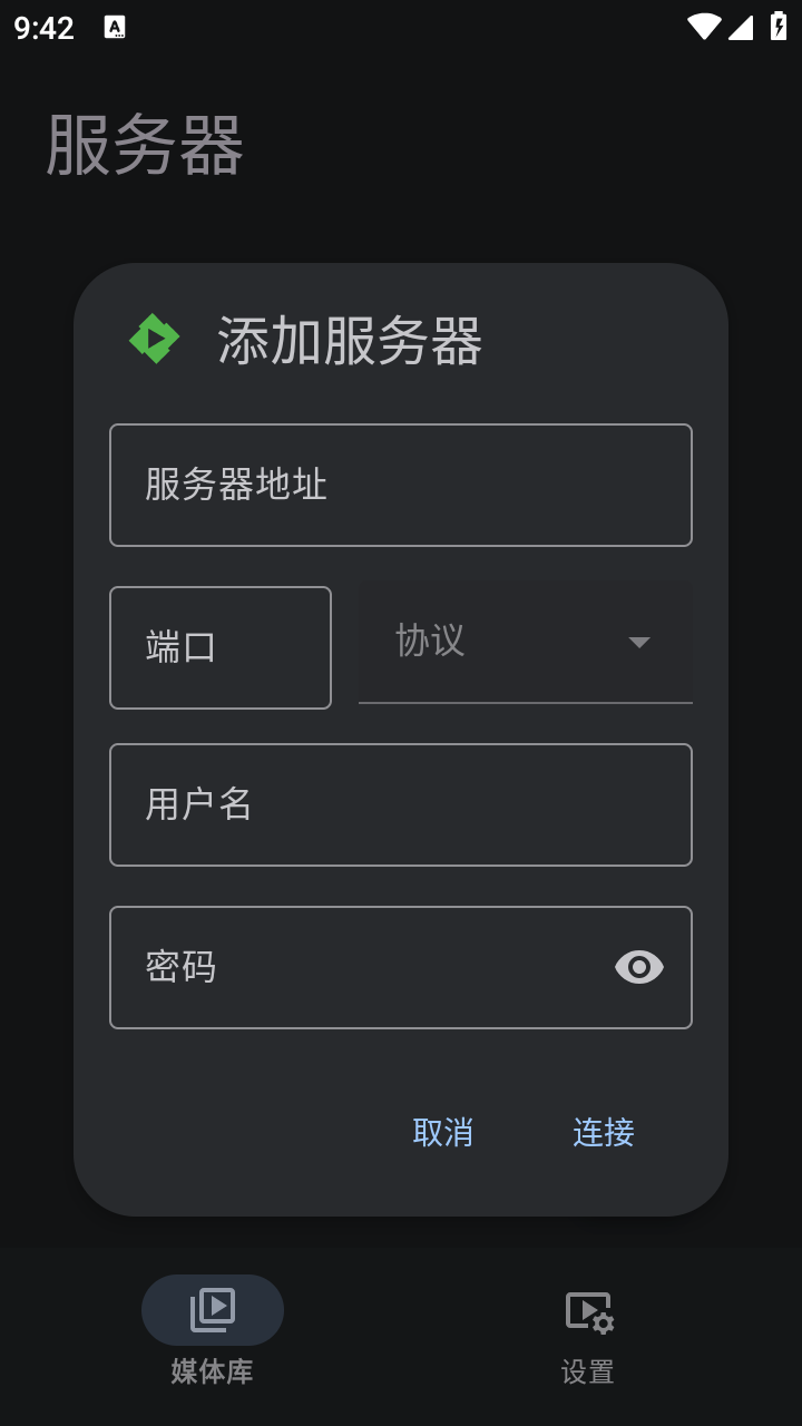 2.点击“+”添加服务器,设置用户名账号和密码并连接