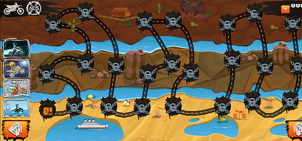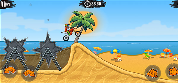 1、玩家需要驾驶摩托车迅速通过各种精彩的关卡;