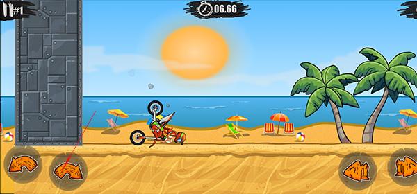 2、该游戏具有非常逼真的物理引擎,你需要灵活的控制好摩托车的油门以及刹车,还需要调整摩托车的重心,完成一系列高难度空中转体特技,获得高分,轻松挑战关卡。