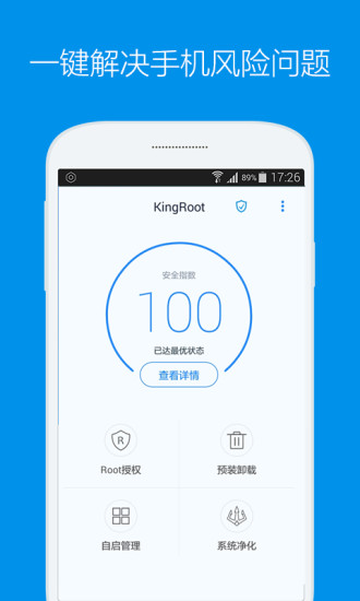 KingRoot(授权管理)是全球超过3亿用户信赖的一键Root权限管理工具,支持10万多款手机获取Root权限,让你轻松掌握安卓所有功能,操作快捷简便!