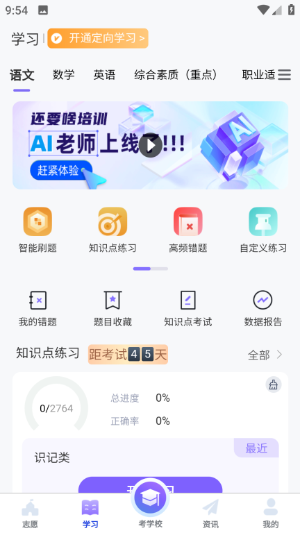 3、学习版块,智能刷题、知识点习题、高频错题应有尽有;