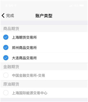 6、根据个人情况选择投资者类型;选择账户类型(勾选上海期货交易所、郑州商品交易所、大连商品交易所。如已在其他期货公司开过金融、原油,可相应勾选)