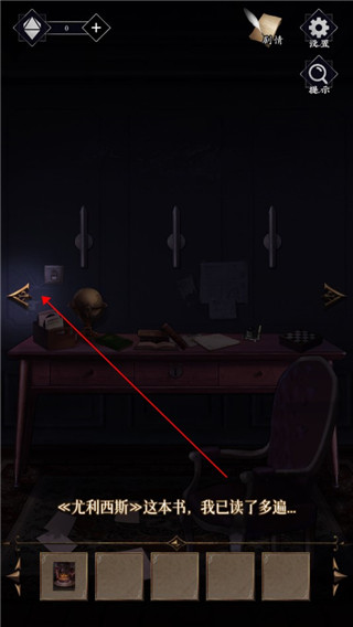 3、根据剧情提示,向左移动,在书架上找到《尤利西斯》这本书。