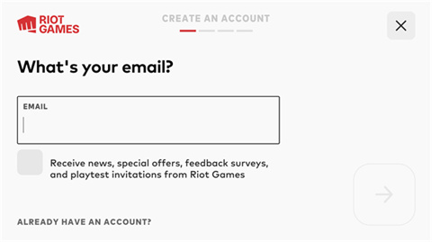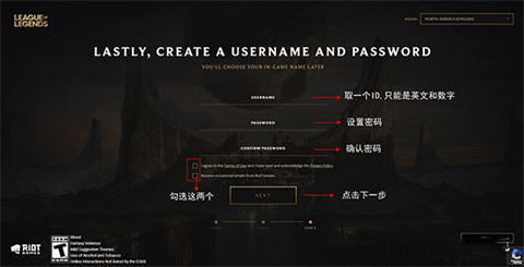 5、这一步是填写登录账号名称,登录名称,而不是游戏中的昵称。不能是汉字,只能是字母和阿拉伯数字。填写后,点击右下角的箭头进行下一步。