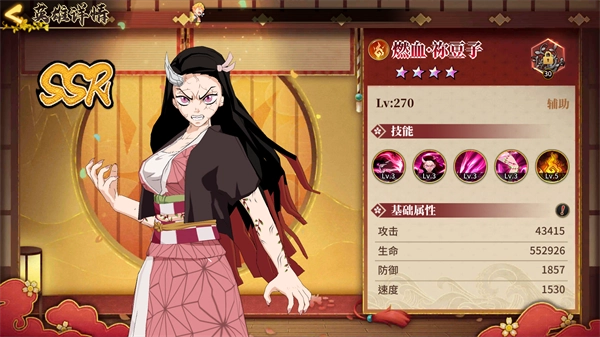 游戏中玩家可以扮演动漫人物如炭治郎,祢豆子,我妻善逸等,并选择不同属性的阵容如烈火,流水,风雷,血鬼来进行战斗。