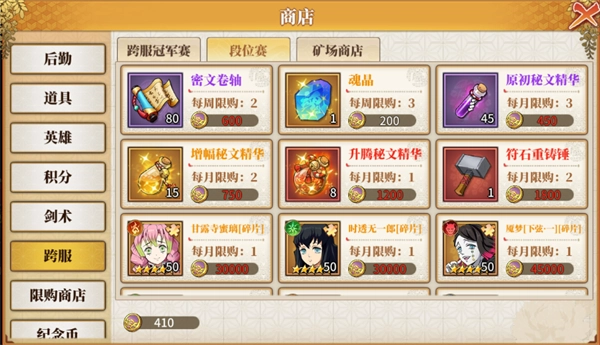 每个自然周为一个赛季,赛季结束后将重置玩家积分;每周日22:00:00~周一10:00:00将进行跨服匹配,届时将关闭挑战通道,玩家不能再进行挑战。