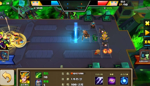 在此,不妨留意一个小细节,绿胖子的攻击距离为128,破法的攻击距离则是120 。这意味着,若把山岭放置在3号位,兵线按上图所示交接后,无论队长优先攻击目标是谁,只要用小锤子刷新仇恨,队长必定会先打破法。而且,普通攻击对中甲单位能造成130%的伤害。另外,优先清理掉对方的输出单位,无疑对我方是有利的。