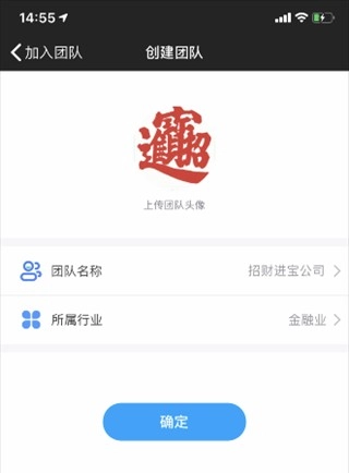 2.填写团队对应的头像、团队名称、团队行业后,点击确定成功创建团队。