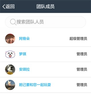 通过团队成员管理,可对团队成员进行管理员的设置、移除、修改团队昵称等操作。