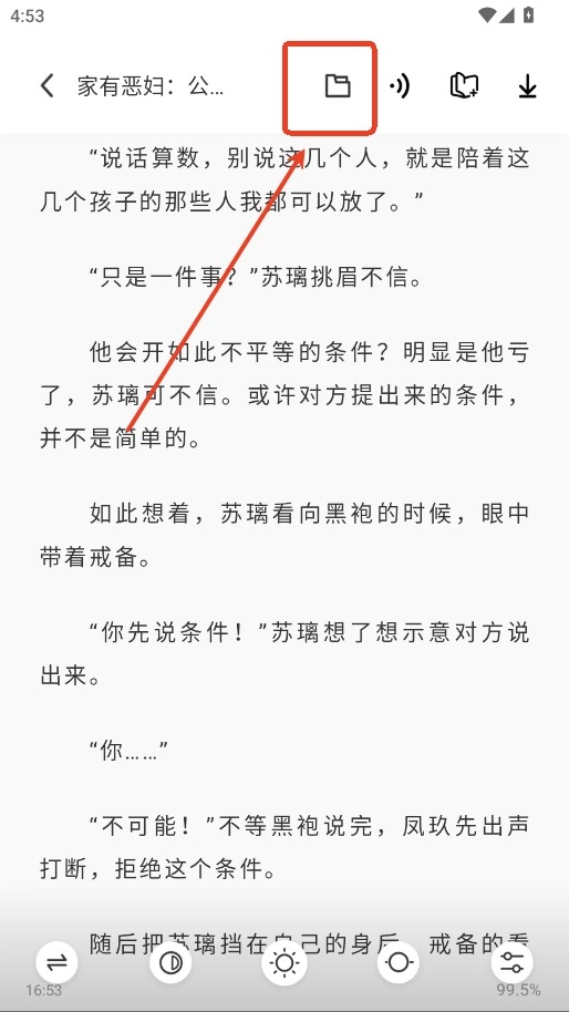 2、在阅读界面下方进行点击操作,随后在屏幕中央或者右上角的位置,找寻与朗读相关的图标,像“耳机”图标这类。