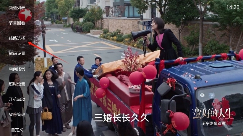 点击后会显示可用线路列表(如\"主线路\"、\"备用1\"等)。