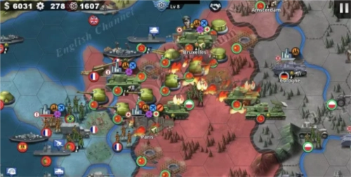 3、天朝:前期看似只有一个战场,实际上需要为三线作战做准备。开局给北京上经济地标,南京上工业地标。然后陈绍宽,榴弹炮,火箭炮调下来收复宝岛台湾。把韩国打掉之后稍微等一下,等日本把兵调下水之后用海军消灭他们。与此同时,中部的军队,尤其是重庆的重坦克要调下来把嘤髪打掉。爆两队满编重坦克,分别上古德里安和空将,调去欧洲伺机占领两个城。 中期先把日本打掉,这时苏联大概已经占领了北欧,古德里安和空将到达了欧洲。依靠空军帮助,古德里安可以不断连击收割欧洲的杂牌军(精锐应该被苏联消耗光了)。南部的军队继续进发征服澳大利亚。与此同时,组建舰队护送陆军渡海登陆加拿大和美国。