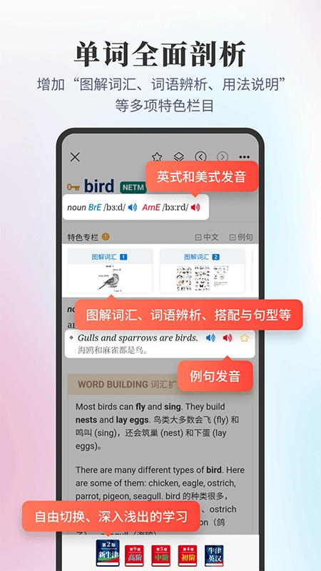 根据你的学习喜好,可一键切换,秒变英英词典、英汉词典。