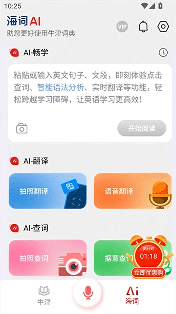 3、如果需要AI功能的话,我们可以点击底部导航栏的“AI海词”,体验AI查词、翻译等功能