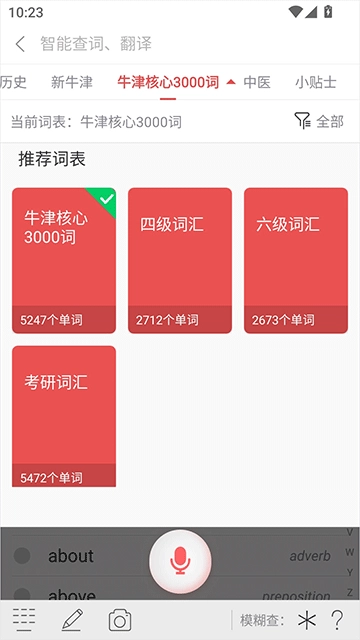 2、在搜索界面,我们可以切换词典和词表,进行精准搜索