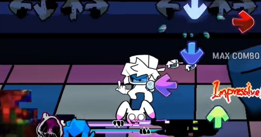 4、想要打败boss,你得跟着节拍和音乐,及时按下箭头。屏幕下方是游戏进度条,尽量让进度条往左边移动。要是你热衷于挑战手速,还对不同的模组版本感兴趣,那周五放克夜错误化模组整合版可千万别错过,一定要来体验一番。