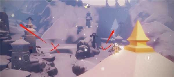 任务三的聆听点位:第三个聆听点在霞谷的霞光城的一个柱子上。小编依稀记得当时没有跟随,来寻找这个点位的时候不知道转了多少圈才找到这个聆听点,不过任务还是挺不错的,有一半的时间都是自动飞行不需要自己操作了。
