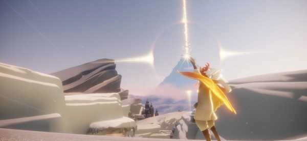 找到黄色人影,与它们互动 收集“光之翼”,我们的 飞行技能就可以得到 升级――斗篷背后 星星的数量就代表我们的飞行级别。