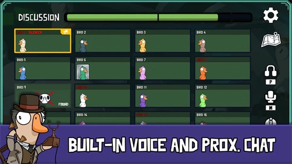 2、当鹅发现尸体后,可按下R键报警,随后所有人即刻开启开会模式进行讨论,大家依次轮流发言,探讨谁是鸭子。发言结束后,玩家们进行投票,选出一名玩家使其出局。
