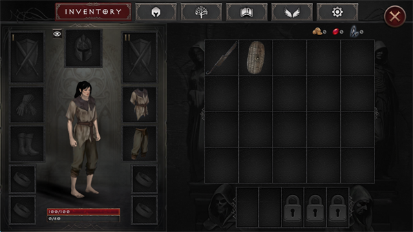 6、随后的攻击方式有两种,一种是普通攻击,根据左右手的武器不同,攻击方式不同,刀目前就只有一个砍击,盾则有两种,一种降低对方防御,另一种概率眩晕,并且都可造成少量伤害;另一种攻击方式为技能,暂时还不会学到,基础的新手装备足够驰骋新手村了。