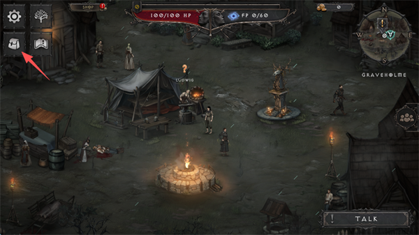 4、交谈之后,点击屏幕左上角的“背包”标识。