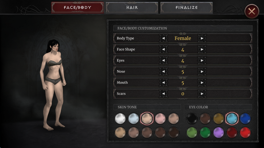 1、进入吸血鬼的陨落2游戏,玩家为角色塑形,调整外观。