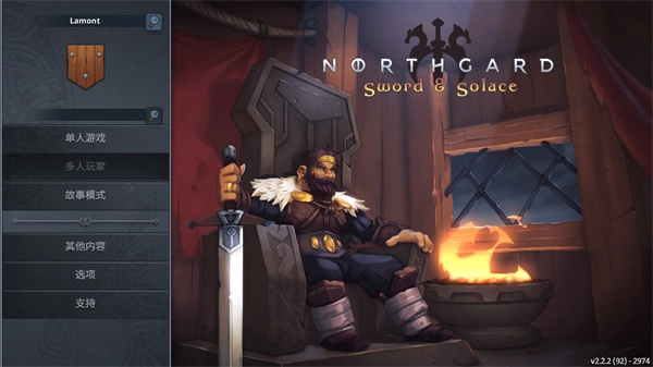 1、在本站并打开Northgard免费中文版,在这里你可以发现单人游戏、多人玩家以及故事模式等玩法,同时还有设置选项。