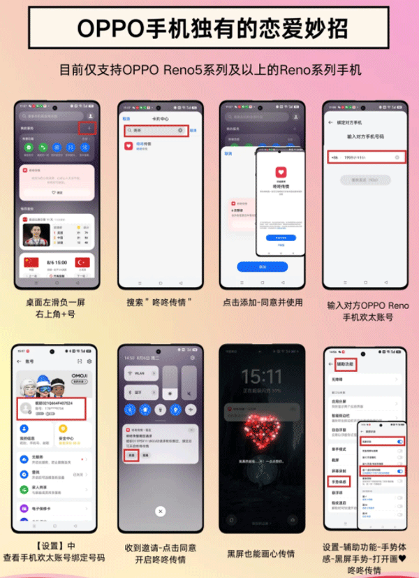 4、Reno8系列与Reno9系列:这两个系列的OPPO手机同样支持咚咚传情功能,进一步扩大了该功能的适用范围。