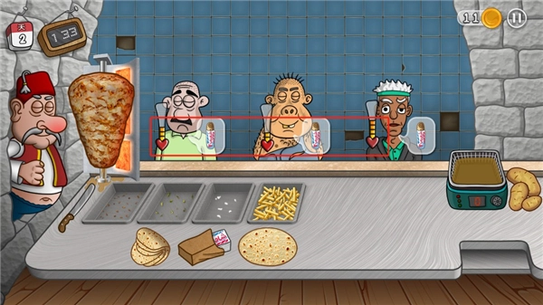 4、随着经营推进,可用赚取的金币升级厨房设备、扩大店面,解锁新的食材和卷饼配方,提升餐厅接待能力和服务范围,让小店朝着知名沙威玛店不断发展。