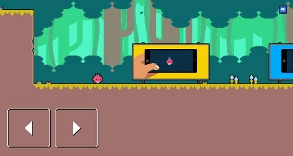 2、于像素风格的森林场景里,点击屏幕右侧,就能操控角色做出小跳动作,实现较短距离的跨越。