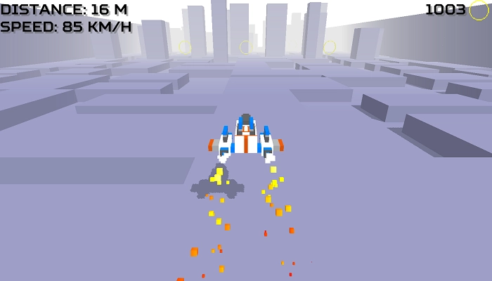 2、需操控飞机进行上下左右的驾驶动作,以躲避周围的其他障碍物,并穿过一个个形似方块的建筑物。