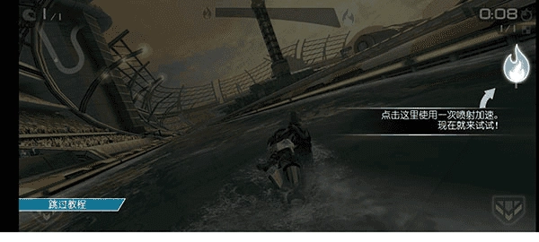 3、玩家操控的水上摩托艇将冲向高台,做出炫目的特技动作,然后平稳落地
