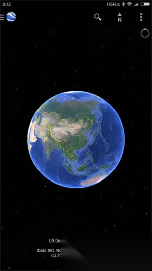 单指可转动地球模型,双指进行缩放、倾斜视图操作,还能通过搜索框输入地点名称、经纬度等信息来快速定位。