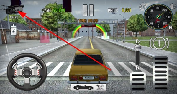 4、在游戏界面右侧找到视角切换按钮并点击,就能在第一人称视角与第三人称视角间切换,感受不一样的赛车视觉体验。