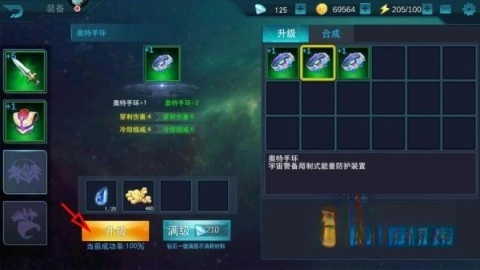 4、最后点击升级并选择右边的装备,操作完成后便可进行升级。