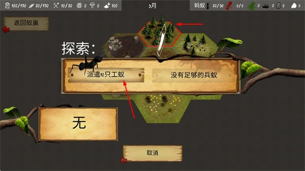 2、在殖民地管理中派遣工蚁进行巢穴维修、增加存储、移除死亡蚂蚁等操作。