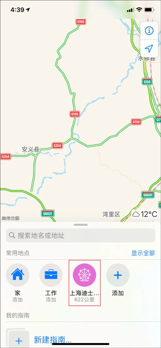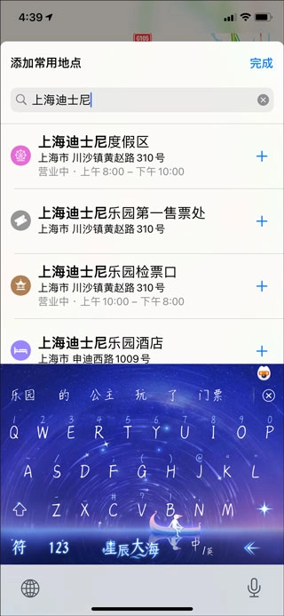 2、进入如图界面,在搜索栏中查询想要定位的地名,如上海迪士尼: