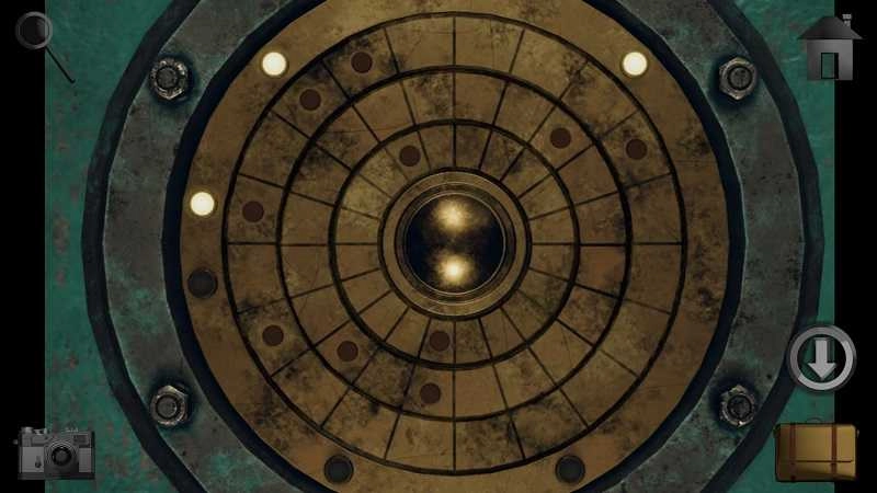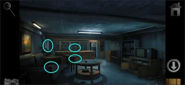 16、进入地下室,点击拐角走廊墙壁的机械面板,依顺序打开盖子取得「锤子」。返回客厅用锤子砸开玻璃柜拿到「台球」,最后到游戏厅按墙上提示摆放台球。