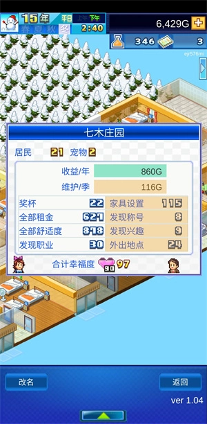 3、居民培养:玩家可以发展居民的兴趣和技能,如烹饪、学习、游戏和音乐等,帮助他们获得专属兴趣称号,并实现职业梦想。