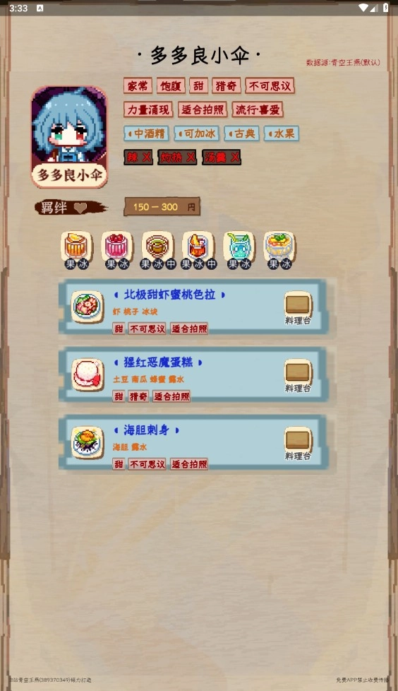 5、很容易发现和看到每个角色的细节、菜单和烹饪方法。