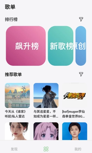 点击中间的歌单选项,你还能发现众多优质资源,同时可以查看许多精彩的榜单以及歌单内容。
