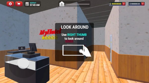 2、滑动屏幕右侧来环顾酒店四周(调整视角)。